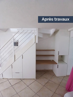 Conception, fabrication et pose d’un placard sur mesure sous escalier à Quimperlé, optimisant un espace souvent inutilisé. L’aménagement a été pensé pour offrir un rangement pratique et fonctionnel tout en s’intégrant harmonieusement au style intérieur existant, maximisant ainsi chaque centimètre disponible.